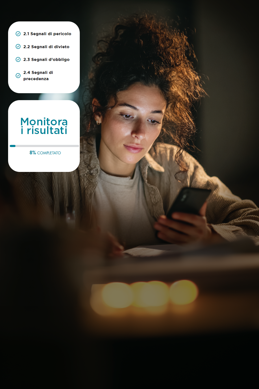 Dopo l'acquisto avrai accesso alla piattaforma, accessibile dall'area personale, e potrai studiare monitorando i tuoi progressi.